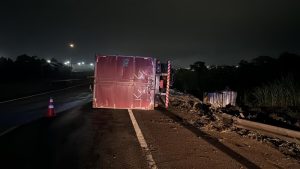 Carreta tomba e deixa ferido na Via Dutra, em Itatiaia Divulgação / PRF Uma carreta tombou na madrugada desta sexta-feira (19) na Via Dutra em