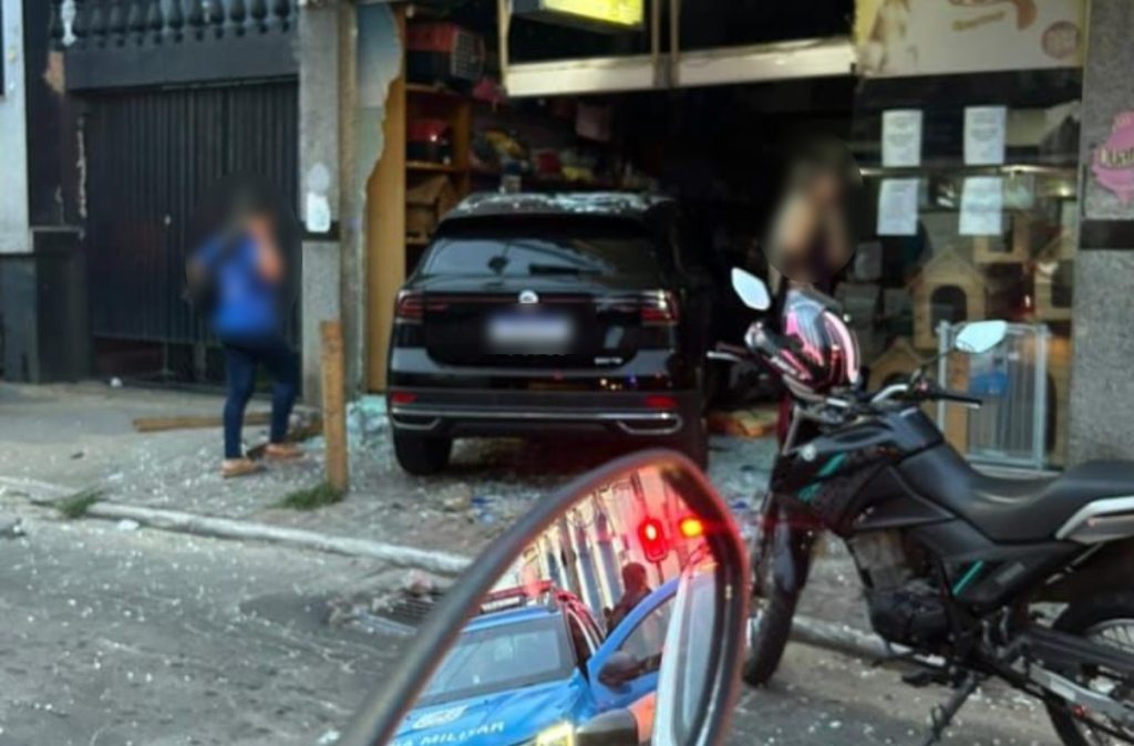 Segundo a PM, o motorista do veículo de passeio perdeu o controle da direção e atingiu a porta de vidro da entrada, além de provocar danos a objetos no interior da loja. Ninguém ficou ferido.